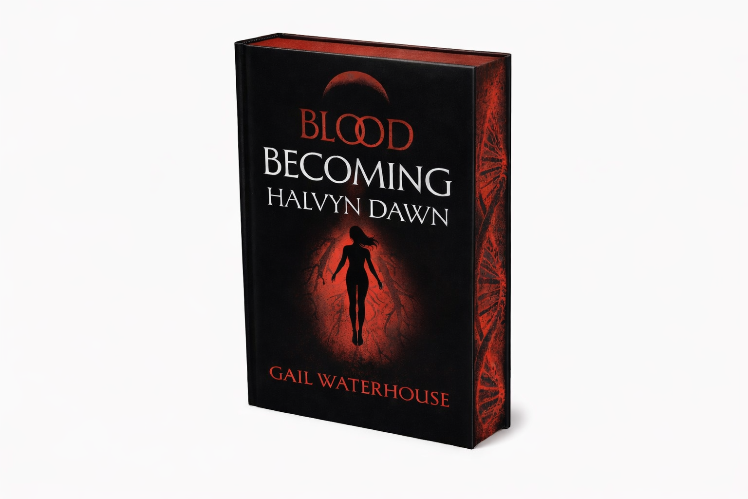 Digitally printed fore-edge with a DNA double helix woven with red veins